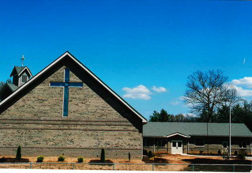 - A church building in a neighborhood in Hendersonville.